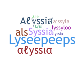 Alyssia के लिए शीर्ष उपनाम - Aly, Syssia, Lyseepeeps, Lyss, Aℓℽssiส, lyssyloo, als, lyssia। हमारी सूची से खेलों, सोशल नेटवर्क और ब्रांड्स के लिए नाम चुनें या अपना उपनाम सबमिट करें।